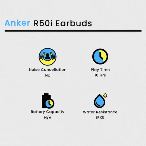 Enjoy the perfect mix of power, portability, and precision with the Anker Soundcore R50i True Wireless Earbuds. Designed for music lovers and daily commuters, these earbuds feature custom oversized drivers for booming bass, AI-enhanced call quality, and IPX5 water resistance for worry-free workouts or travel.
